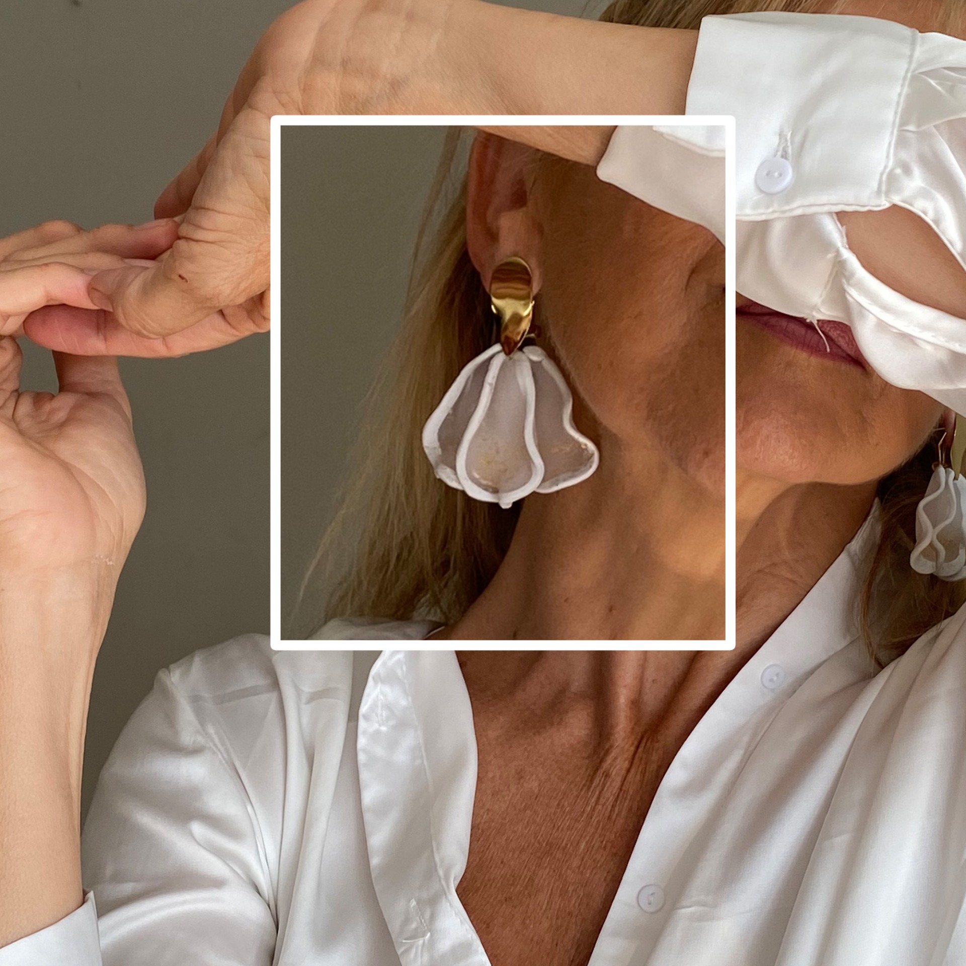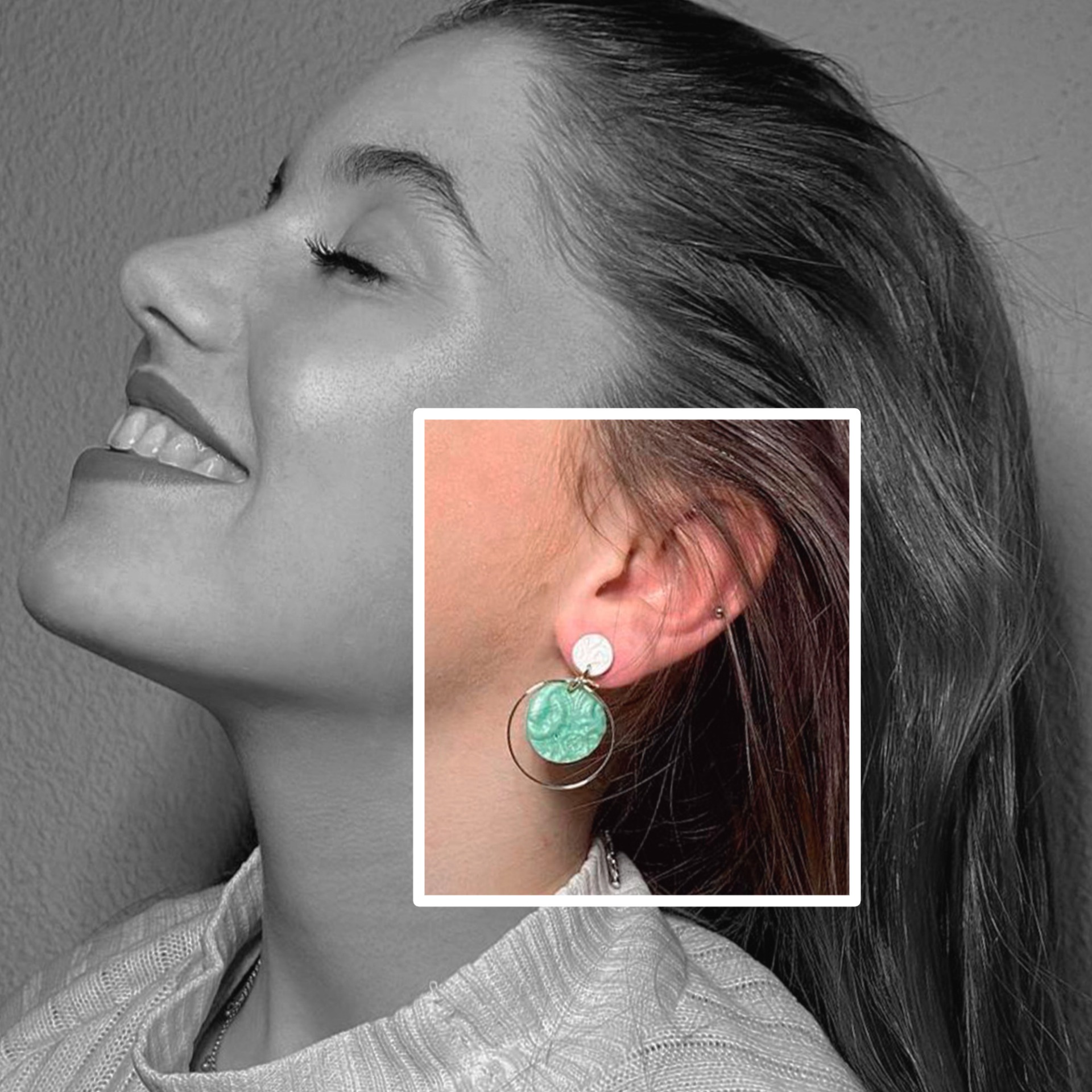 Our earrings are modeled by hand, in an artisanal way. Made of clay and mixed with stainless steel.