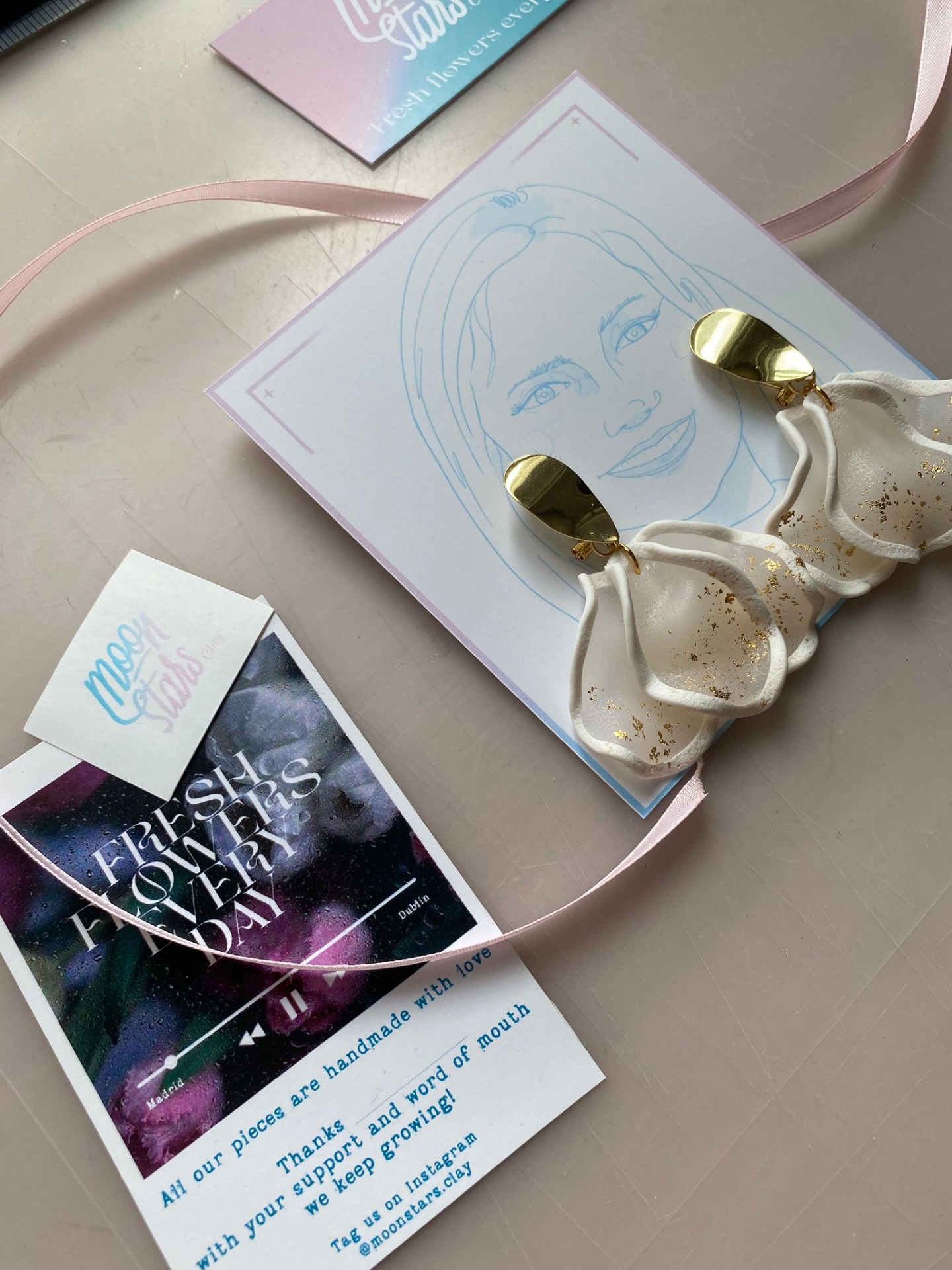 The Blossom collection is inspired by real flowers, giving them our personal touch, creating unique and elegant designs.This collection is designed for events and weddings, that is why they are large, long models with a lot of gold.